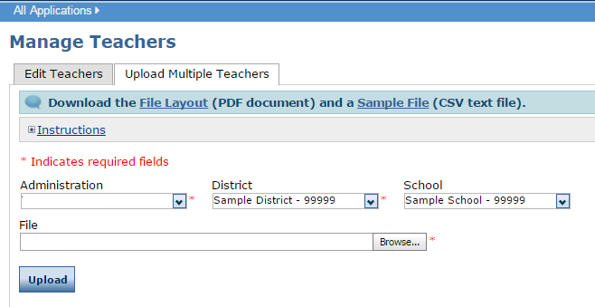 a file using the Upload Multiple Teachers process.
